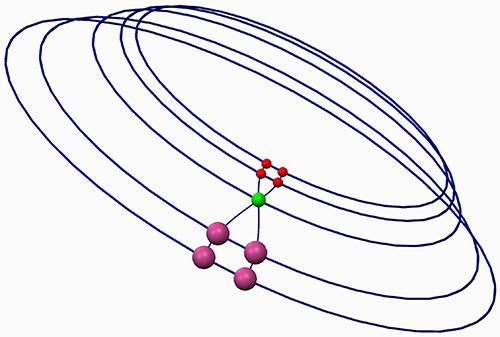 Four orbital parameters of a solar planetary object in a four-member group are controlled collectively with the other three partners by a four-dimensional equation on the surface of an elliptical cone. Physical data for twenty-one planet and moon groups are adopted to verify its accuracy. Most results have less than 1% error.